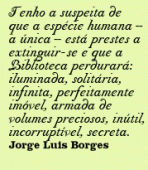"Tenho a suspeita de que a espécie humana - a única - está prestes a extinguir-se e a Biblioteca perdurará: iluminada, solitária, infinita, perfeitamente imóvel, armada de volumes preciosos, inútil, incorruptível, secreta".