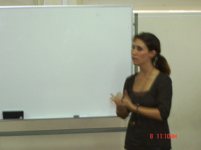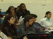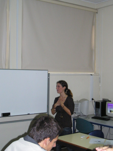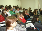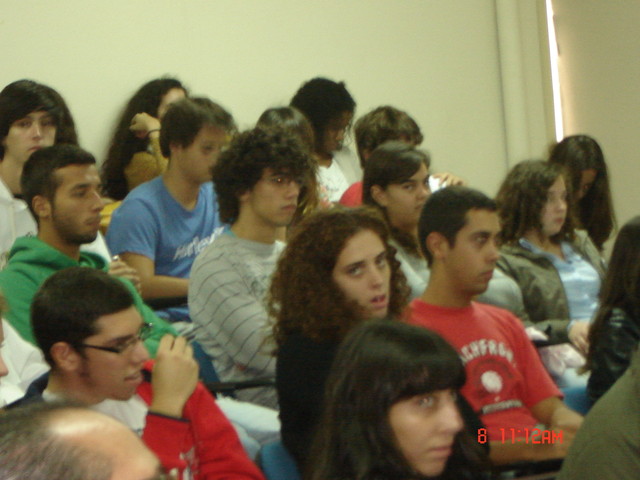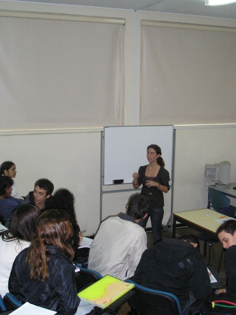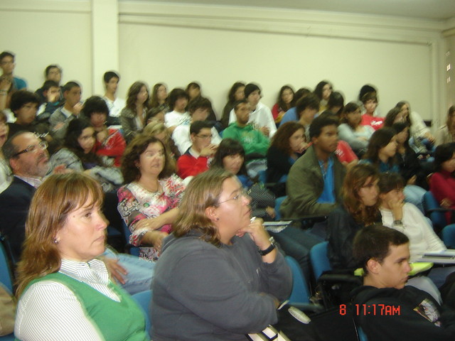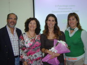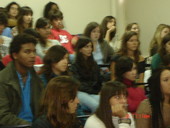 De seguida, comunicou que realizara um estágio profissional numa Instituição Particular de Solidariedade Social (IPSS), com o objectivo de promover competências pessoais e sociais, concretamente ajudando adolescentes a mudar o modo de comunicar com os outros, para que a sua comunicação agressiva a pouco e pouco se tornasse assertiva, conceitos que muito bem explicou aos presentes, alunos de Psicologia do 12º ano. Focou ainda a importância dos pares e da influência dos grupos na adolescência.