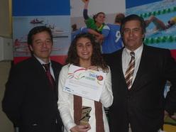 O prémio foi entregue pela senhora ministra da educação e estiveram presentes a acompanhar a ginasta o Director Dr. João Gabriel, em representação da Escola, a coordenadora do desporto escolar, Dra. Alda Ataide e o Professor/Treinador António Andrade.