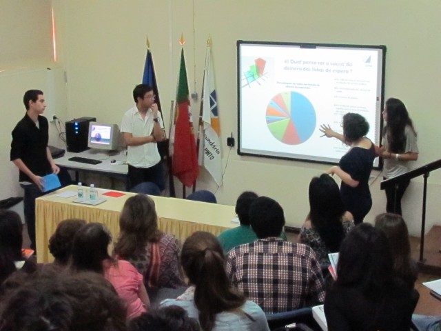 No dia 27 de Maio, pelas 08:30 horas, decorreu no auditório a apresentação de um trabalho realizado por um grupo de alunos do 12º 3, no âmbito da Área de Projecto, subordinado ao tema "Discrepância entre a Saúde Pública e a Saúde Privada – Listas de Espera”.