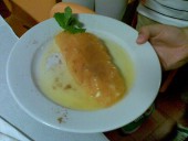 O resultado, na opinião dos convidados para jantar, foi surpreendente! Canja rica de galinha, bifes de fiambre com um molho divinal, puré de batata e legumes vários, foram degustados com visível prazer pelos convivas, que no final se deliciaram com uma sobremesa de laranja com canela, de que todos quiseram saber o segredo do molho!
