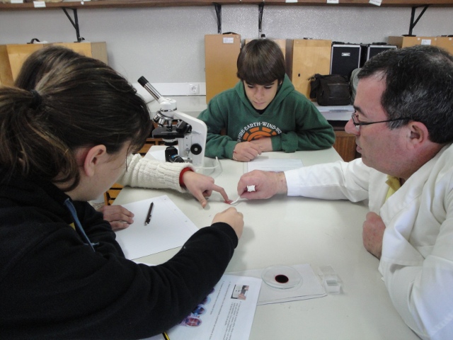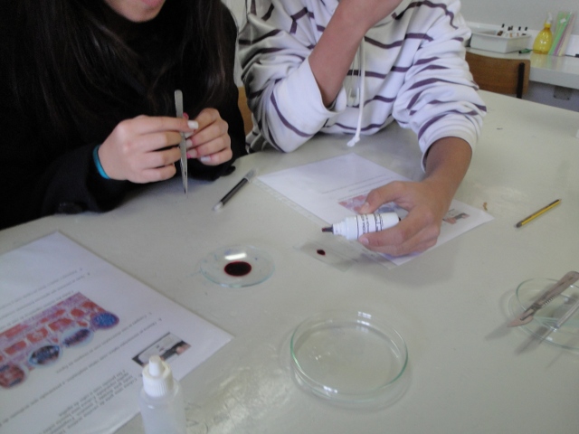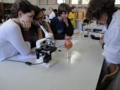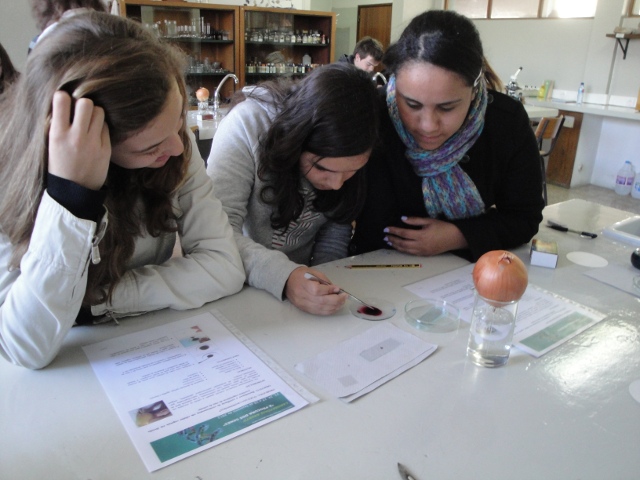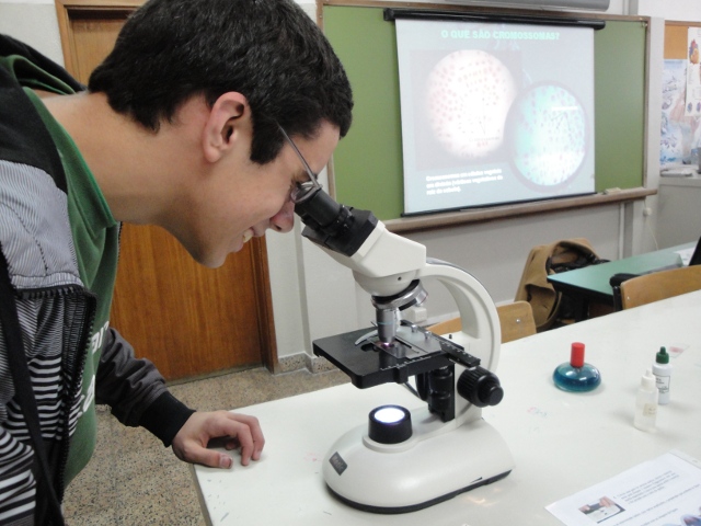 Os alunos do 9º ano puderam observar cromossomas em preparações por eles feitas, assumindo por um curto período de tempo o papel de investigadores, de forma a consolidarem os conhecimentos teóricos obtidos nas aulas.