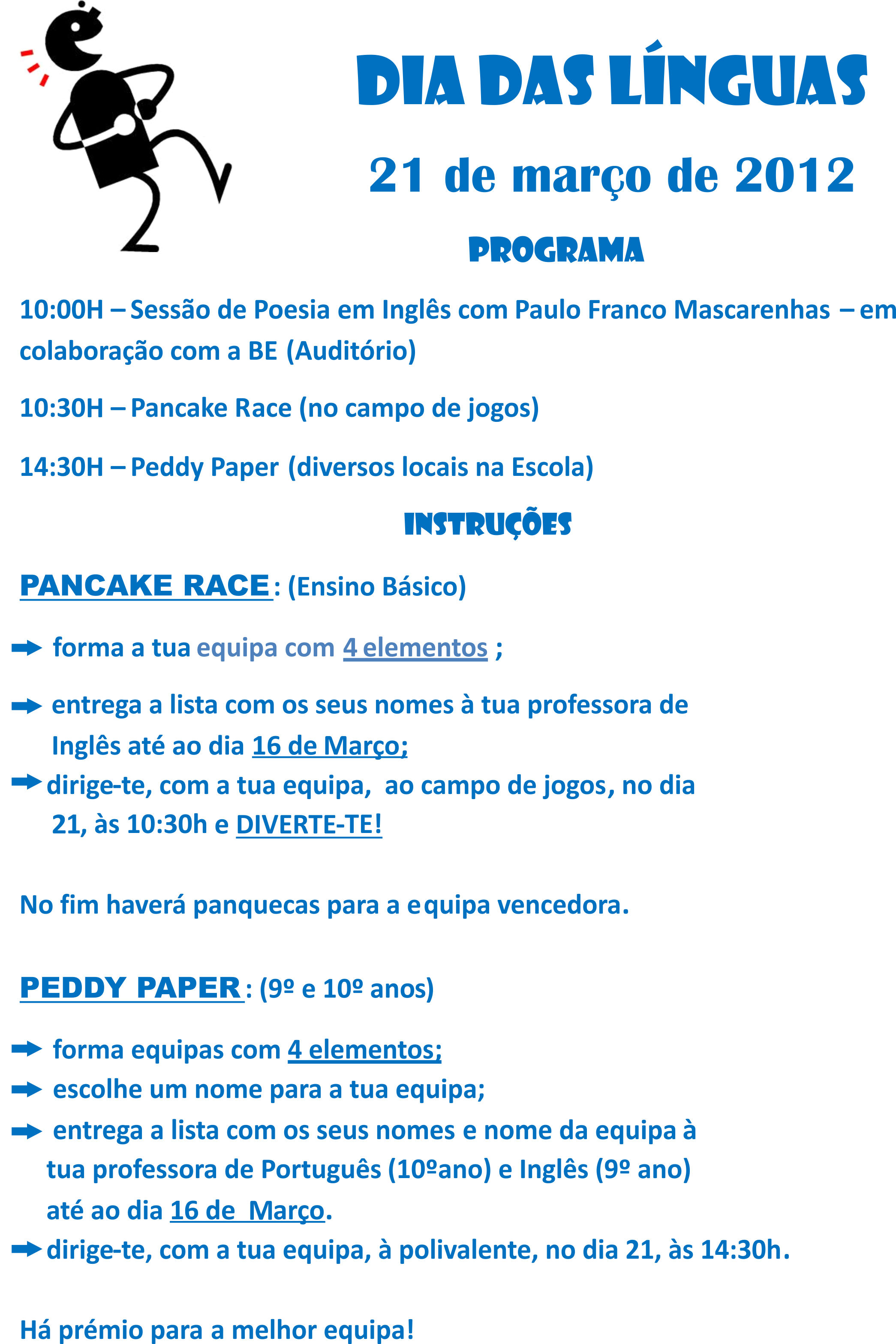 Este ano, além dos já tradicionais Pancake Race e Peddy Paper das Línguas, terá lugar uma sessão de poesia em inglês.