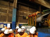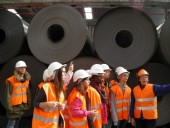 Nesta unidade fabril começámos por assistir a uma apresentação vídeo de todo o processo de produção, e depois pudemos então visitar as instalações, seguindo o processo fabril desde a entrada da matéria-prima, passando pela decapagem, a redução da espessura, a galvanização (revestimento com zinco), o Trem de Skin-pass, o corte longitudinal, enrolamento, embalagem, entre outras possíveis etapas, de acordo com o tipo de produto final. Estas chapas são depois utilizadas na indústria automóvel, de eletrodomésticos, tubagens, etc.