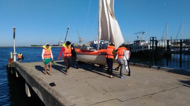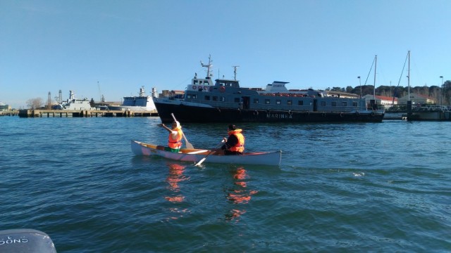 Esta atividade, da iniciativa das disciplinas de Projetos e Educação Física do curso, e concretizada em articulação com o Centro de Formação Desportiva de Atividades Náuticas da Península de Setúbal do Desporto Escolar, proporcionou aos alunos a oportunidade de navegar e governar uma embarcação de recreio a motor, à vela e andar de canoa.