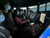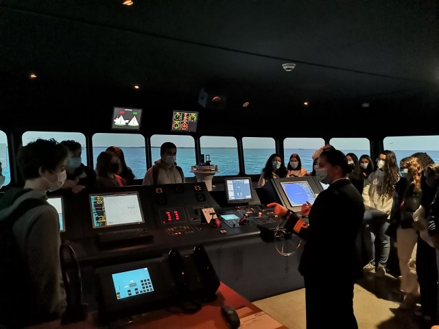 No CITAN – Centro Integrado de Treino e Avaliação Naval, os alunos tiveram oportunidade de experimentar o maior simulador de navegação da base, o Alpha, tomando os comandos na ponte de uma fragata, manipulando lemes a bombordo e estibordo, aumentando e diminuindo a velocidade a ré e a vante… vencendo tempestades e até icebergues!