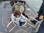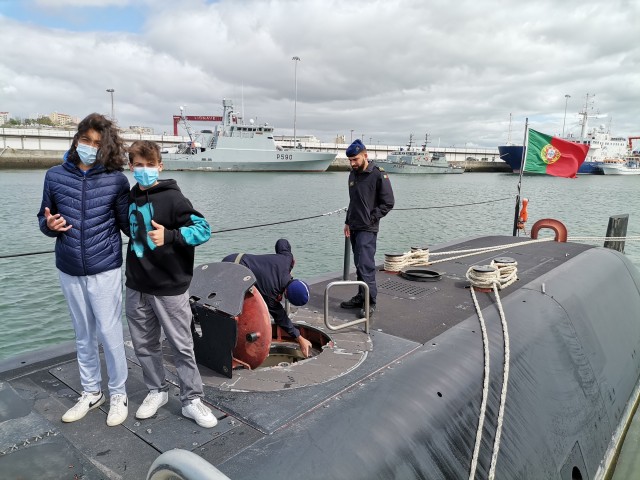Seguiu-se a visita a um submarino, o NRP Tridente, no qual o grupo ficou surpreendido com as exíguas instalações, aprendeu sobre as formas de propulsão e de manobra e reconheceu a vida dura e corajosa dos homens que passam dias imersos e vigilantes, apenas descansando seis horas entre turnos.