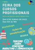A nossa Escola irá realizar a 1.ª Edição da Feira dos Cursos Profissionais, no próximo dia 6 de junho de 2022, entre 10h e as 16h.