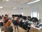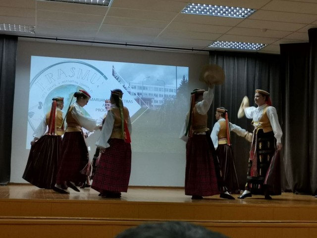 Em Marijampolé, o grupo juntou-se aos alunos dos restantes países parceiros do projeto - Lituânia, Hungria, Alemanha, Grécia e Eslovénia, tendo sido recebidos com uma apresentação de danças folclóricas e cantares locais pelos alunos da escola anfitriã, Petro Armino progimnazija. Durante os 5 dias, os alunos assistiram a algumas aulas e realizaram atividades na escola, bem como tiveram oportunidade de realizar um peddy paper à descoberta de Mariampolé, uma atividade sobre música na Biblioteca e Multicentras e workshops de robótica e realidade virtual, na escola Mariampolés LISPA Mokikla, onde desenharam a sua sala ideal.