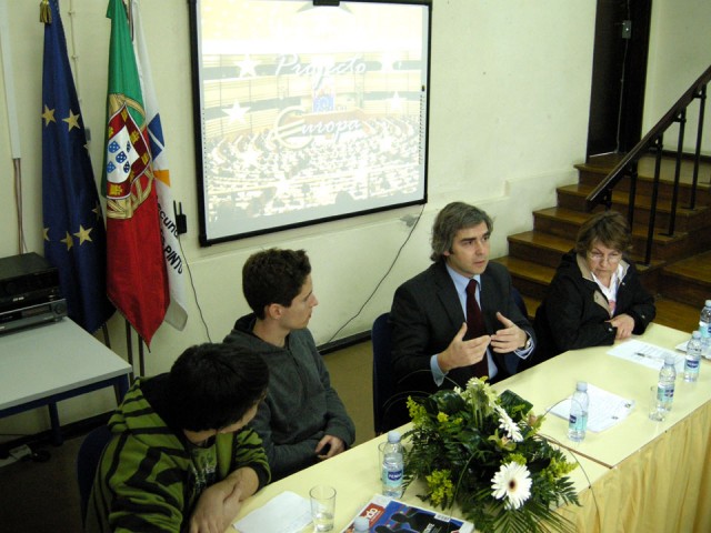 Conforme previsto, realizou-se hoje, dia 12 de Fevereiro, o debate sobre o Tratado de Lisboa. O Eurodeputado Nuno Melo respondeu às questões que lhe foram colocadas, expondo os seus pontos de vista de uma forma clara e acessível, mantendo atenta uma assistência que encheu o auditório da escola.