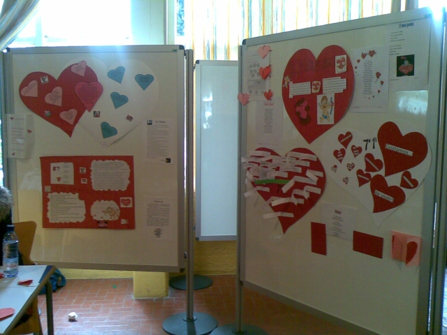 Quem passou hoje na Poli, reparou no entusiasmo com que o 7º 4 celebrou o Dia de S. Valentim! As actividades realizadas, inseridas na Área de Projecto, envolveram 5 grupos de trabalho.