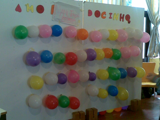 Numa das bancadas, vendiam-se doces alusivos à efeméride, tendo em vista a angariação de fundos para a viagem de finalistas no 9º ano... Noutra, decorria um jogo de "tiro-ao-alvo", premiado com doces...