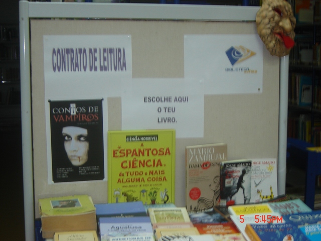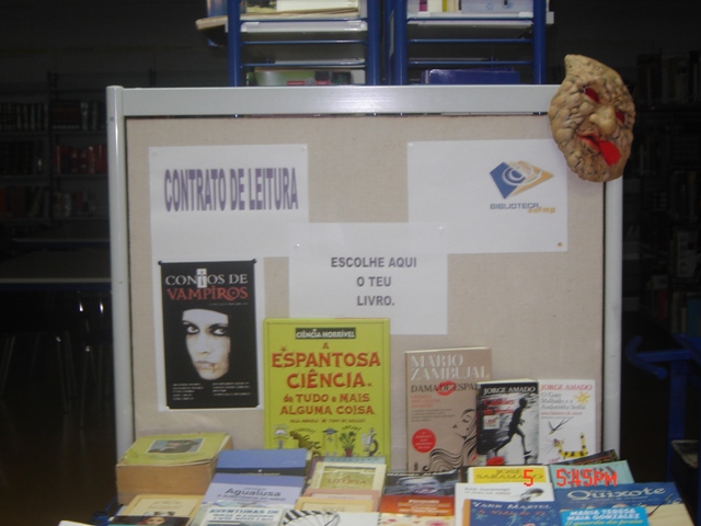 Está patente na Biblioteca uma mostra variada de obras seleccionadas para os Contratos de Leitura dos alunos dos Ensinos Básico e Secundário. Ver aqui.