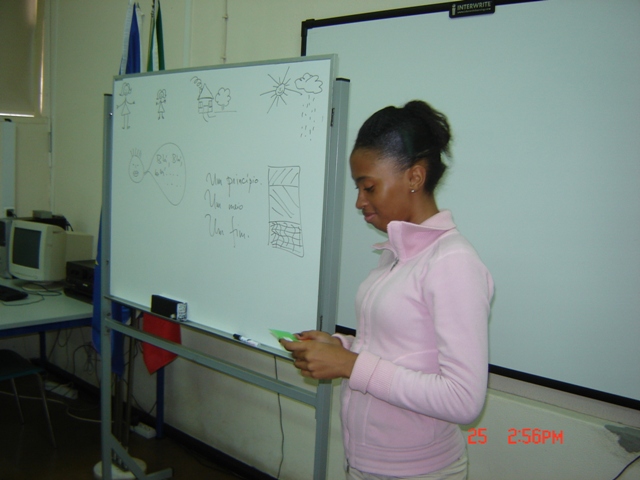 Foi com estes ingredientes e uma coreografia adequada que Isabela Figueiredo cativou uma plateia de alunos do 8º e 9º anos e lhes forneceu algumas dicas para escreverem uma história. Aqui ficam algumas fotos da divertida sessão de culinária com textos, cujas legendas procuram descrever as estratégias adoptadas pela escritora, num paralelismo perfeito entre a arte de cozinhar e a de escrever.