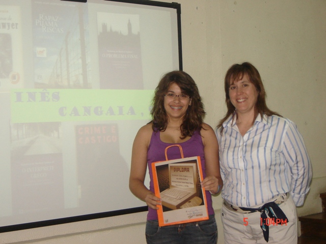 Como já informámos, esta sessão teve uma nota especial por ter sido a primeira a premiar um leitor do Ensino Secundário, neste caso a aluna Dionísia Correia, do 10º4, que se debruçou sobre clássicos da Literatura Portuguesa, algumas biografias e um romance com vertente ecológica.