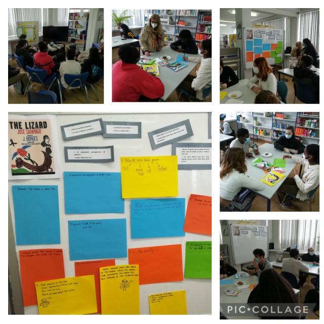 Dia 29/03 - Na hora do conto em Inglês, os alunos do 10º7 estiveram na biblioteca a ouvir a história de O LAGARTO de José Saramago, contada pela professora Zoraida Teles. Como atividade reflexiva e interpretativa do conto, foi-lhe proposto uma interação a partir de questões centrais sobre a história. Foi dinâmico e divertido.