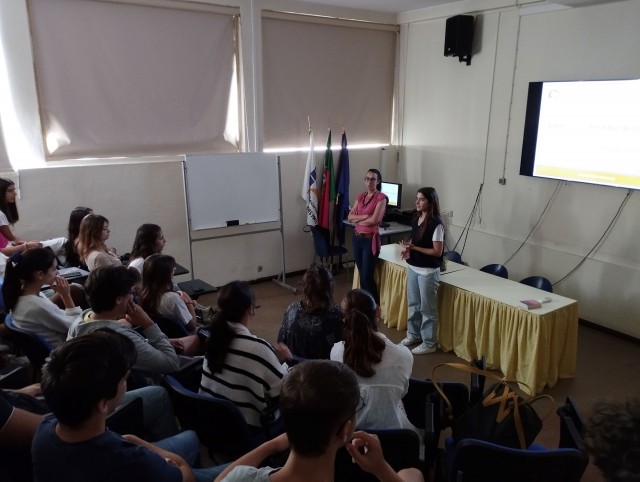 O anfiteatro da escola ficou completo com a presença das turmas do 11º3, 11º7 e 10º6 que atentamente acompanharam a sessão não se inibindo também de participarem com as suas questões.