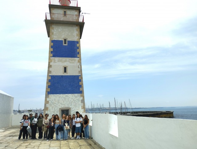 Ter, 30/05/2023 - 15:51No dia 23 de maio os alunos do 11º 7 realizaram uma visita de estudo a Cascais acompanhados pelos professores Gil Rodrigues e Fátima Amaral. Os alunos tiveram oportunidade de desfrutar da viagem de comboio que acompanha na maior parte do seu percurso o estuário do rio Tejo, percorrer o centro histórico da vila, visitar o Forte da Nossa Senhora da Luz, hoje conhecido como Cidadela e as suas galerias de arte; o Farol Museu de Santa Maria, o Centro Cultural de Cascais com a imperdível exposição "Goya, Testemunho do Seu Tempo"; refrescarem-se pelos trilhos do Parque Marechal Carmona e vistar ainda a Casa das Histórias, Museu Paula Rego.