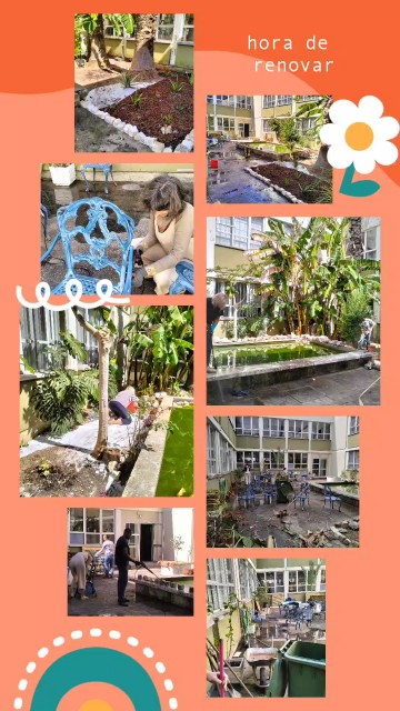 No último semestre do projeto, na linha do desenvolvimento do bem-estar da comunidade escolar, surgiu a ideia de renovar o Jardim das Tartarugas, espaço exterior contíguo à biblioteca, no sentido de promover atividades ligadas à leitura, num ambiente aprazível. O desafio foi lançado à turma 12º8, de Artes Visuais, que desenhou diversos projetos para o jardim. Seguidamente e a partir dos mesmos, o projeto MOVE IN criou um projeto para o jardim visando a restauração do mobiliário, a recuperação de plantas, mas sobretudo a inclusão de elementos gráficos alusivos à leitura. Tem sido um trabalho moroso e difícil, mas estamos em crer que o espaço exterior poderá ser uma extensão da biblioteca, enquanto espaço pedagógico, social e criativo, um espaço de lazer mas também um local propício às aprendizagens.