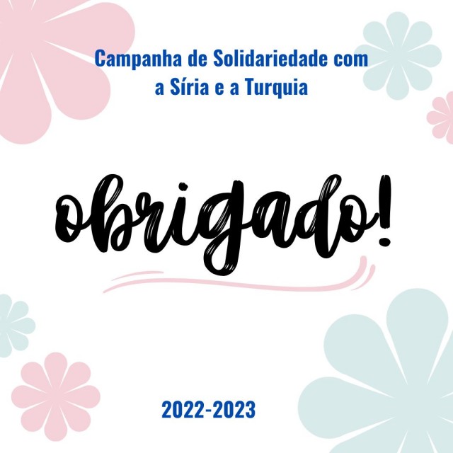 Sex, 26/05/2023 - 17:50A equipa dinamizadora da Campanha de Solidariedade com a Síria e a Turquia, na sequência dos sismos ocorridos durante este ano, agradece a generosidade de todos (professores, alunos, funcionários, pais/encarregados de educação e outros) para com esta causa. Informa ainda que os donativos já foram encaminhados para os respetivos destinos, tendo o nosso contributo sido recebido com a maior alegria.