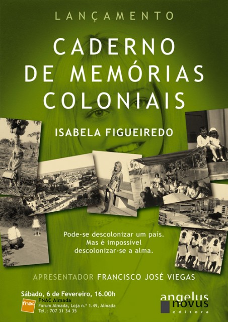 Já tinhamos referido que a professora Isabel Figueiredo iria ter em Almada o lançamento da reedição do seu livro "Caderno de Memórias Coloniais". Pois é já no dia 6 deste mês de Fevereiro, na FNAC do Fórum Almada, pelas 16 horas. Quem quiser assistir à tertúlia, com o Francisco José Viegas, aqui fica o convite...
